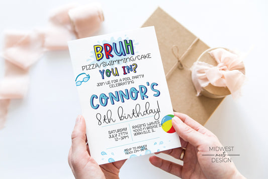 Bruh It's My Birthday Pool Party Birthday Invite - Digital/Print