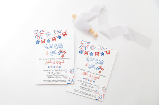 Wed, White & Blue Couples Shower Invitation - Digital Download