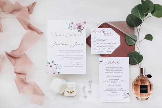 Anna Floral Wedding Invite Suite - Printed 5 Piece